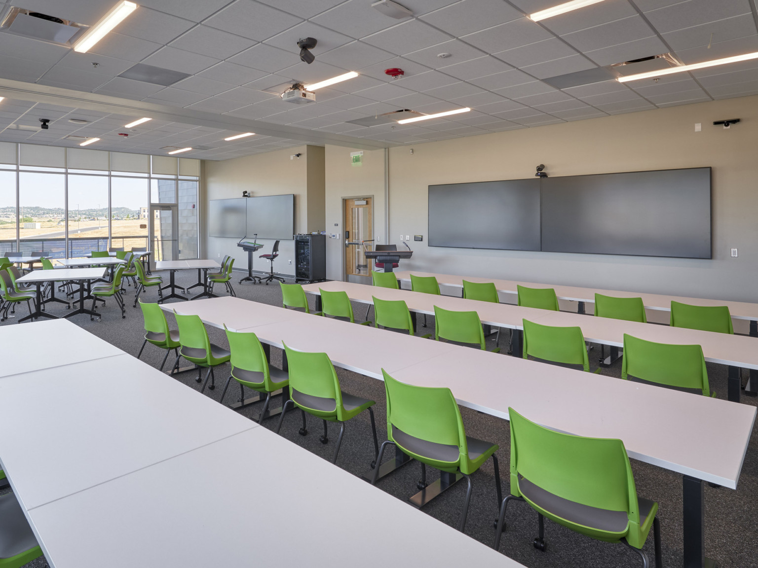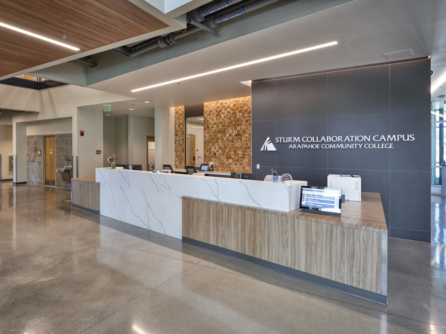 In collaboration with Colorado State University and the Douglas County School District, ACC provides complementary course offerings and enhanced student services on the Campus. Located on 14.9 acres, the first phase of the Arapahoe Community College Castle Rock Collaboration Campus is 45,000 gross SF, with associated outdoor learning plazas, access, parking and landscaping. This building accommodates 700-to-800 students studying sciences and applied sciences, arts, business, and technology. The new building is accessible to academic, community and business partners in the fields of business, entrepreneurship, information technology, and health.