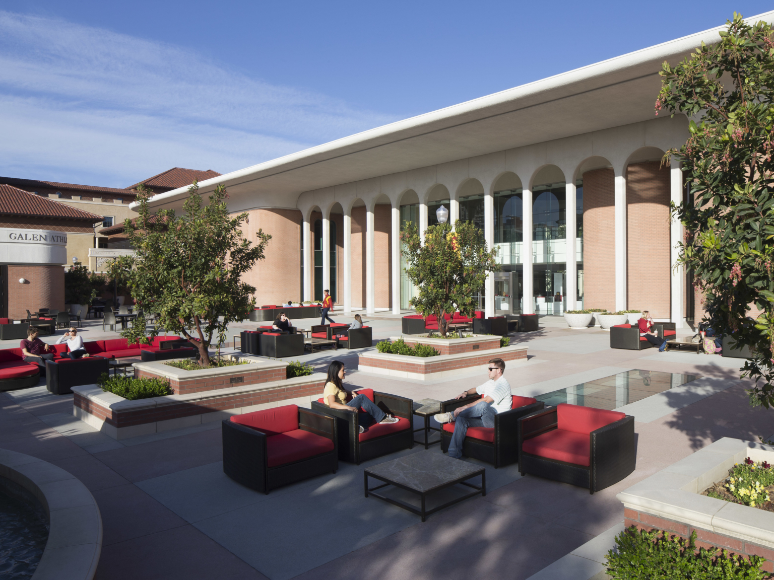 A double-height lobby is now a light-filled space celebrating NCAA championships, Heisman Trophy-winners, Olympians, coaches, student-athletes, and USC’s 21 athletics programs.