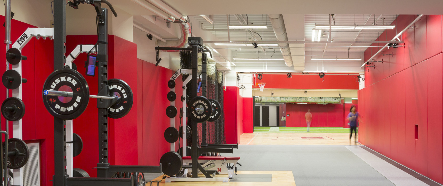 The multi-story facility is located within the east side of Memorial Stadium. The lower level houses the Dynamic Space, where athletes are observed in their regular performance environment including synthetic field turf and rubberized and hardwood flooring. Also included is a batting cage, a golf training area, a basketball/volleyball court, cardiovascular zone, running lane, locker rooms, and storage areas. The Collaborative Space, on the upper level, contains flexible lab and work areas that provide an environment for researchers, athletic trainers, coaches, clinicians, and industry partners to gather. These spaces include research and testing facilities, a biomarker laboratory, bone density scanner, and ultrasound.