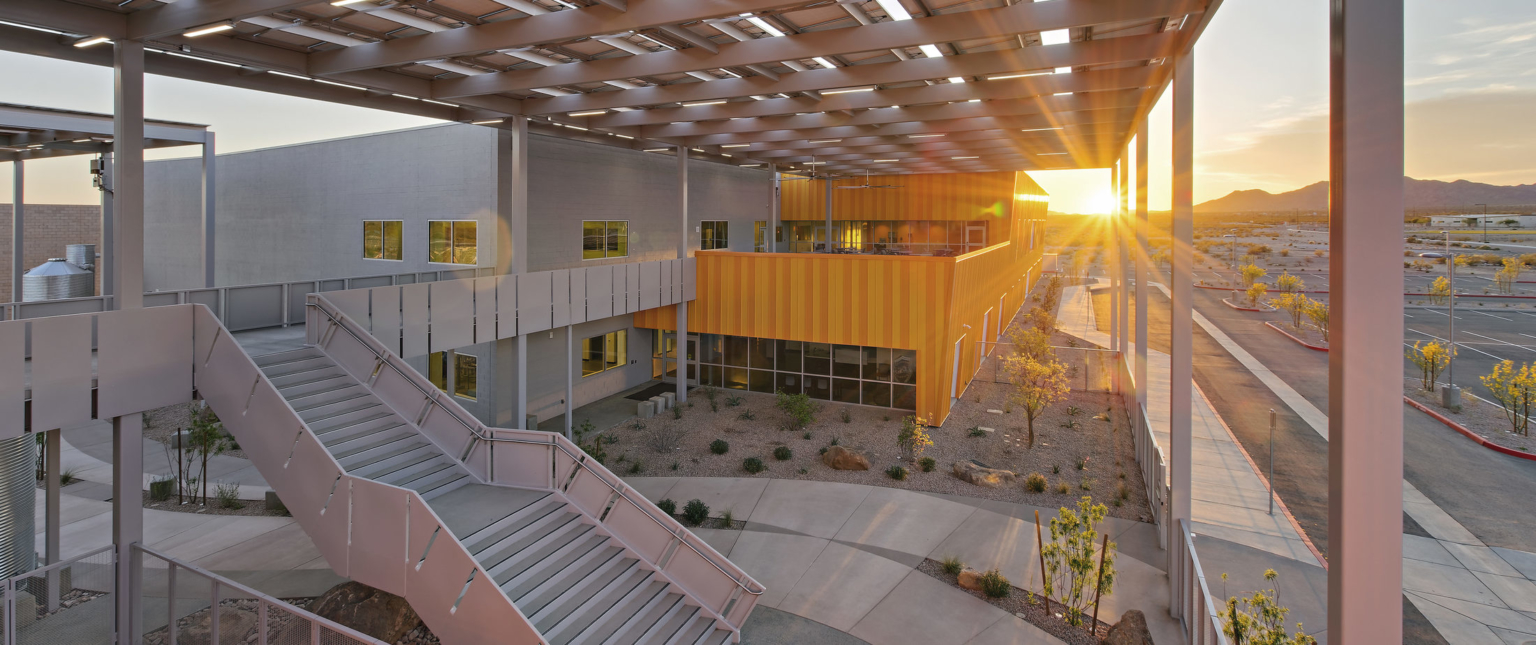 The architecture comprises a new 47,000-SF pre-engineered metal structure-the Aviation Center-consisting of classrooms, administrative offices, training areas, and workspace. In addition, there is a 38,000-SF precision-manufacturing and welding technology building; and a 20,000-SF support building/warehouse. A large assembly space known as the Demonstration Lab provides a space for industry and educational partners to collaborate and gather.